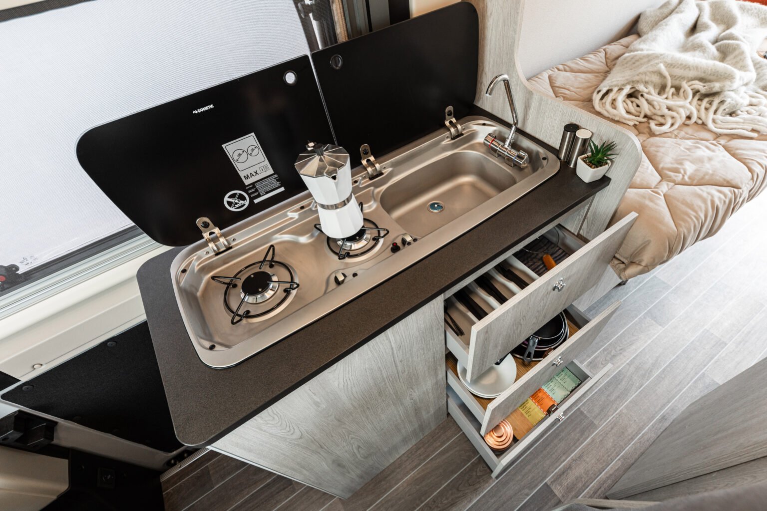 Livingstone Sport is the van that makes the difference in terms of functionality, comfort and equipment without compromising on style. Seven models, with lengths ranging from 5.41 m to 6.36 m and different types of beds, including classic double, double bunk or longitudinal beds, twin beds and electric fold-down beds in the rear.